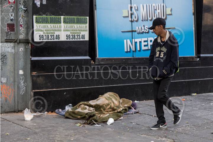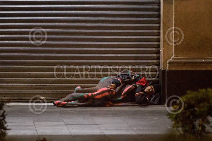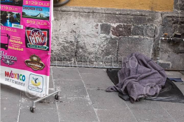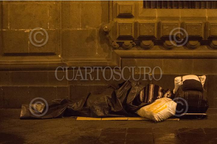 CIUDAD DE MÉXICO, 20DICIEMBRE2017.- De madrugada y al amanecer, es común observar en el primer cuadro del Centro Hustórico "bultos humanos", personas en condición de calle que intentan con cobijas, cartones y plásticos protegerse de las bajas temperaturas de la época decembrina. FOTO: TERCERO DÍAZ /CUARTOSCURO.COM