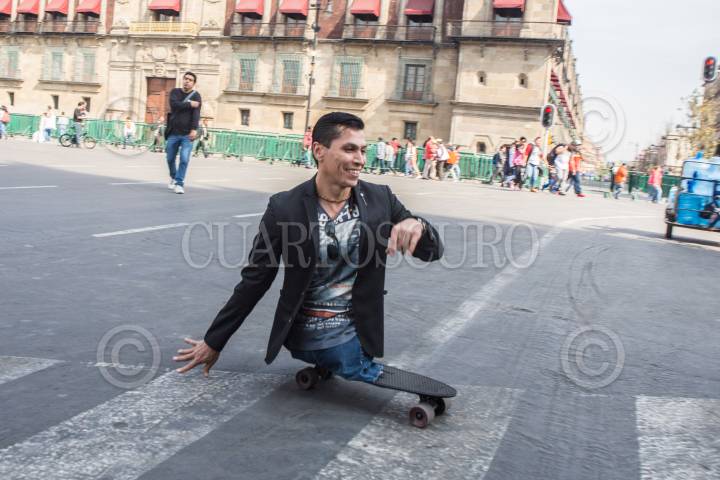 CIUDAD DE MÉXICO, 22DICIEMBRE2017.- Un hombre sin piernas pasea en patineta por el Centro Histórico de la capital. FOTO: TERCERO DÍAZ /CUARTOSCURO.COM