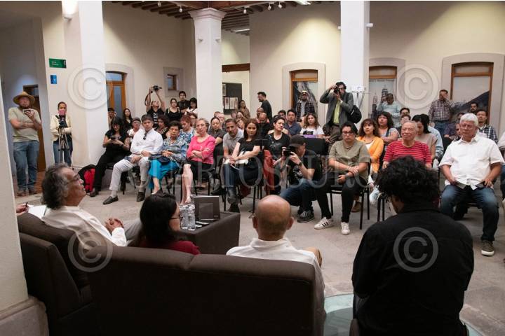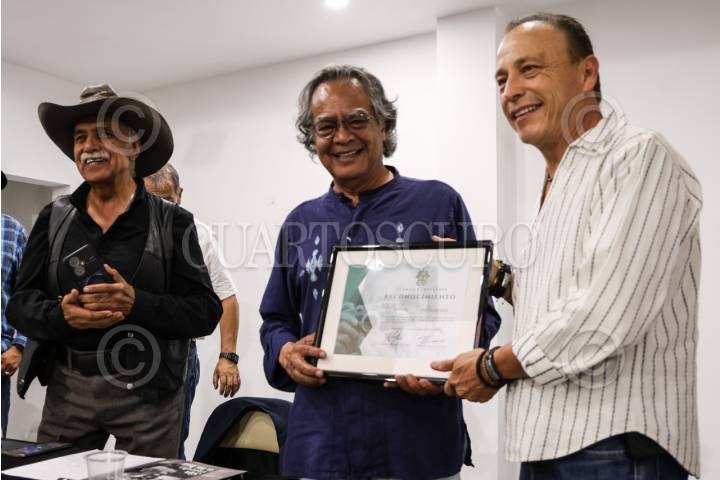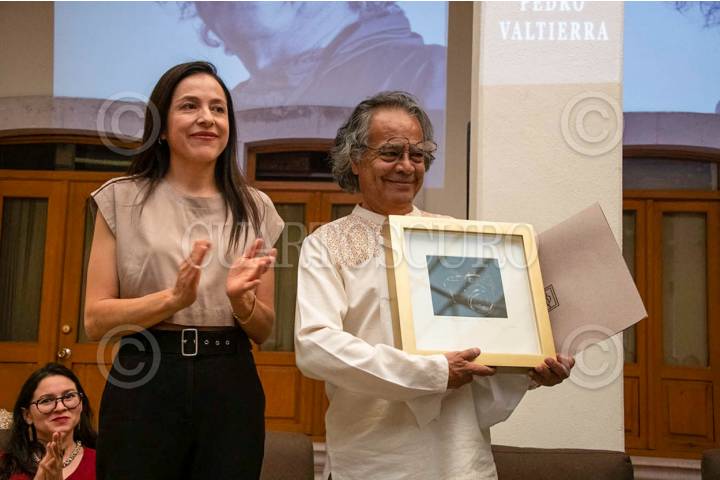 ZACATECAS, ZACATECAS, 12JUNIO2025.- Para festejar medio siglo de capturar imágenes periodísticas, el fotógrafo fresnillense Pedro Valtierra presentó hoy en la Fototeca de Zacatecas el libro “Sin miedo a la luz”. En el cual estan impresas 163 fotografías icónicas con las que el fotoperiodista a registrado los momentos históricos, nacionales e internacionales en 50 años de vida fotográfica. Comentaron la publicación el artista plástico Alfonso López Monreal, el poeta Juan José Macías, el maestro universitario Marco Antonio Flores Zavala, la escritora Verónica G. Arredondo y el moderador Adolfo Vladimir. También recibió un reconocimiento por su labor fotográfica en manos de la Directora María de Jesús Muñoz Reyes. FOTO: CARLOS SEGURA/CUARTOSCURO.COM
