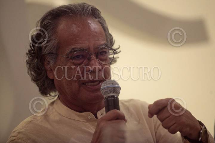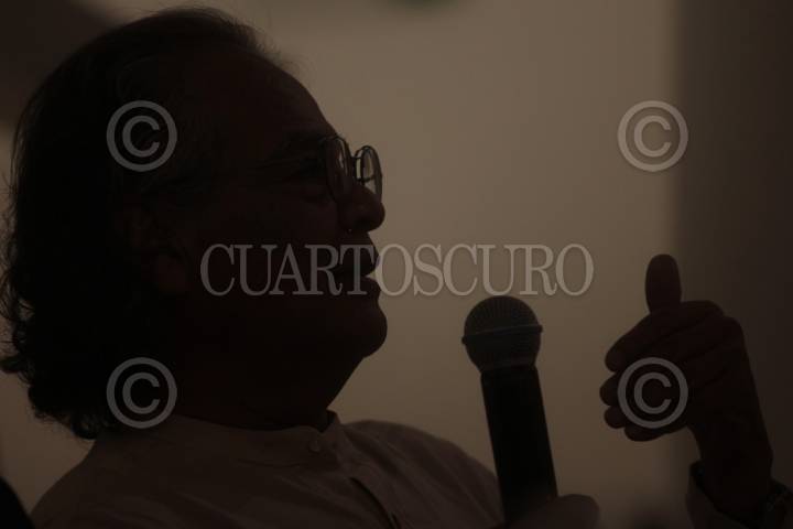 GUADALAJARA, JALISCO, 26JUNIO2025.– Pedro Valtierra, director de la revista y agencia de fotografía Cuartoscuro, encabezó la presentación de su más reciente obra Sin miedo a la luz, en el marco de sus 50 años como fotoperiodista. El evento se llevó a cabo en el Museo de las Artes del Paraninfo Enrique Díaz de León de la Universidad de Guadalajara. FOTO: FERNANDO CARRANZA GARCÍA / CUARTOSCURO.COM
