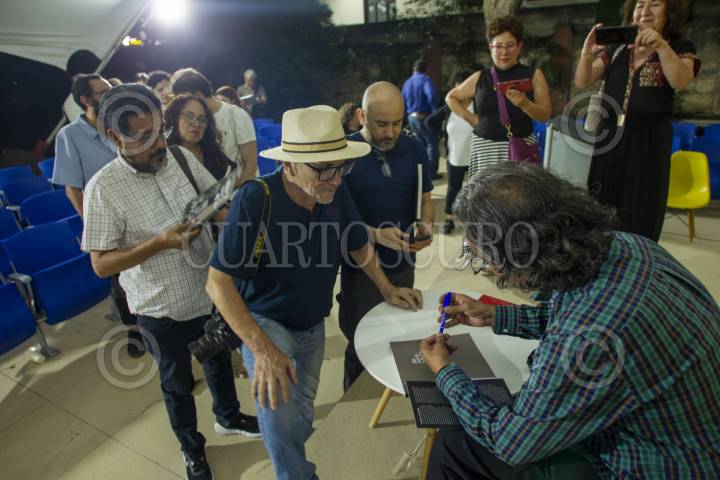GUADALAJARA, JALISCO, 26JUNIO2025.– Pedro Valtierra, director de la revista y agencia de fotografía Cuartoscuro, firmó ejemplares de su libro Sin miedo a la luz tras su presentación en el Museo de las Artes del Paraninfo Enrique Díaz de León de la Universidad de Guadalajara. La actividad se realizó como parte de la conmemoración por sus 50 años de trayectoria como fotoperiodista. FOTO: FERNANDO CARRANZA GARCÍA / CUARTOSCURO.COM