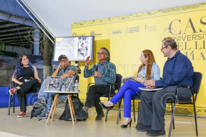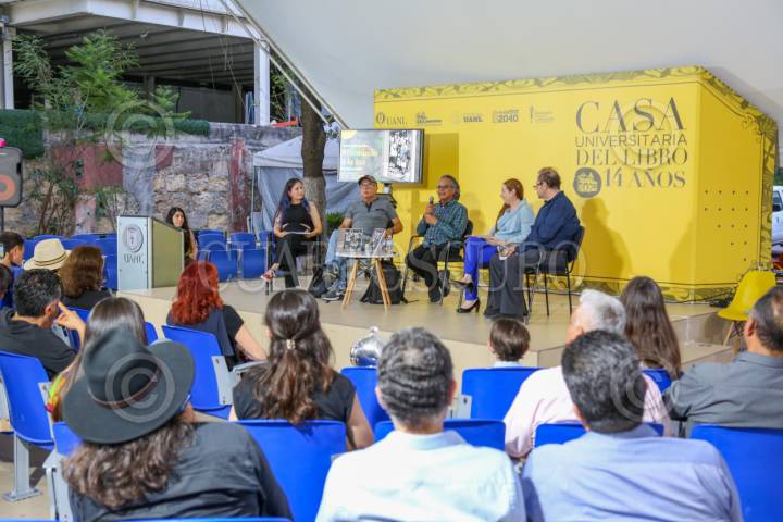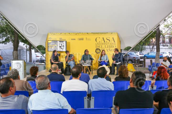 MONTERREY, NUEVO LEÓN, 17JULIO2025.- La casa universitaria del libro de la Universidad Autónoma de Nuevo León cabo la presentación de libro "Sin miedo a la luz" del fotoperiodista Pedro Valtierra, donde se recopila parte de su archivo fotográfico de 50 años de trabajo. La presentación estuvo a cargo de Velia de la Cruz, Hernando Garza, Gabriela Pérez Montiel y Gabriel Contreras. FOTO: JULIO CÉSAR AGUILAR/ CUARTOSCURO.COM