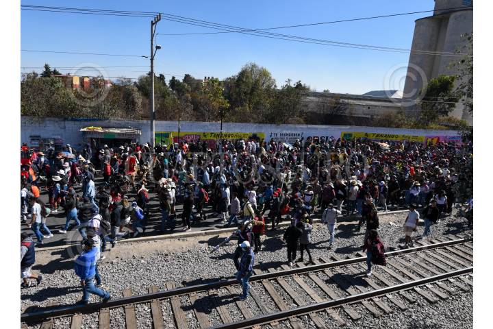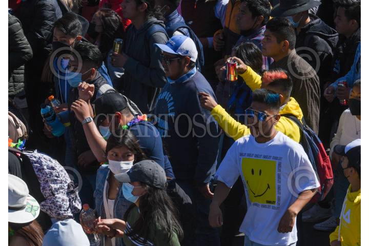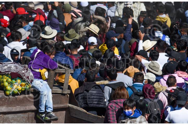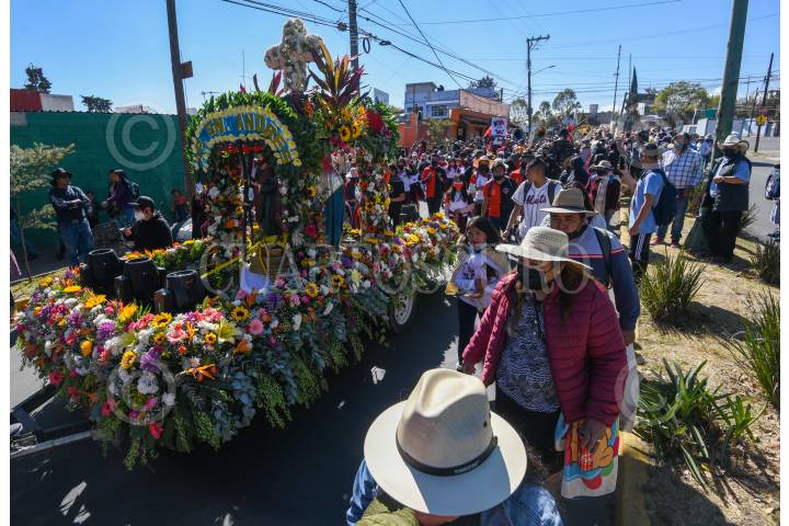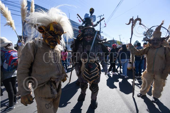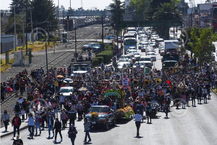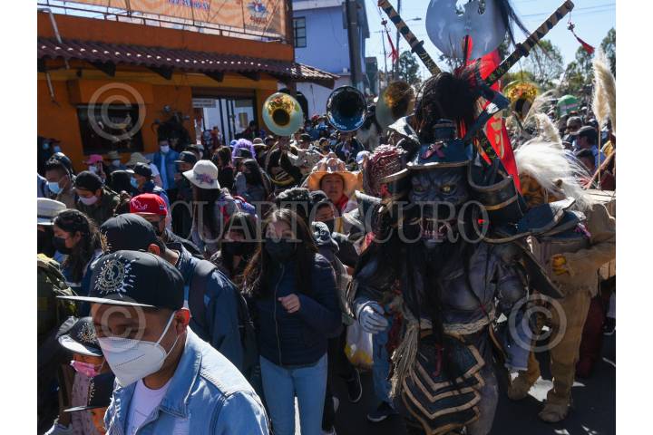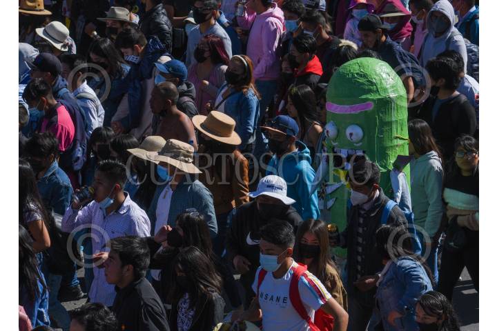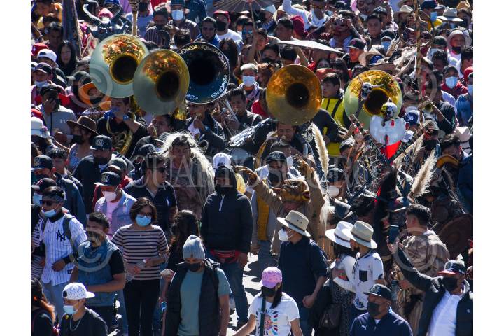 Pobladores de San Andrés Cuexcontitlán celebraron a su santo patrono recorriendo las calles de Toluca con música y disfraces, olvidándose de la sana distancia.