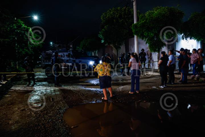 CULIACÁN, SINALOAS, 13AGOSTO2025.- Un enfrentamiento entre fuerzas de seguridad y civiles armados dejó un muerto y varios detenidos en Loma de Rodriguera, al norte de Culiacán. El operativo se desplegó tras el ataque a una patrulla estatal en el sector Los Ángeles, cerca del Hospital General. En la zona del enfrentamiento, los agresores fueron localizados y repelidos por autoridades, resultando en un abatido y múltiples capturas. La calle Séptima permanece acordonada con fuerte presencia militar, mientras familiares de los detenidos denuncian que hay heridos dentro de un salón de eventos, lo que ha generado tensiones y cruce de palabras con los elementos de seguridad. Hay que recordar que la semana pasada una situación similar sucedió en Guamuchil, cuando familiares de los detenidos se hicieron de palabras con los elementos castrenses, consecuencia de ello hubo lanzamientos de gas lacrimógeno y disparos al aire. FOTO: JOSÉ BETANZOS/CUARTOSCURO.COM