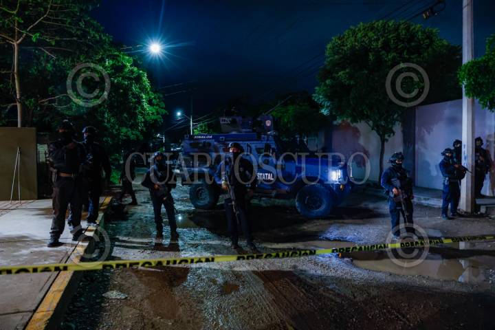 CULIACÁN, SINALOA, 12AGOSTO2025.- Durante un operativo realizado en el fraccionamiento Colinas del Rey, sector Loma Linda, al sur de la ciudad, personal de la Fiscalía General de la República (FGR) y elementos de la Secretaría de la Defensa Nacional aseguraron dos residencias, además de al menos cuatro vehículos, diversas armas y una cantidad no especificada de dinero en efectivo. Aunque las autoridades no han emitido un informe oficial sobre el saldo del operativo, fuentes extraoficiales confirmaron los aseguramientos mientras las diligencias continuaban dentro de las viviendas ubicadas en una zona privada sobre las calles Cerro de la Campana y Cerro de la Noria. Vecinos del lugar alertaron a las autoridades tras observar movimiento militar en el interior del fraccionamiento, el cual presentó daños en el sistema de acceso y un portón derribado, sin que hasta el momento se haya determinado si fueron provocados por fuerzas de seguridad o por integrantes de la delincuencia organizada. Al sitio también acudieron grúas de la policía de tránsito para retirar los vehículos asegurados, así como una plataforma de la Policía Estatal Preventiva que transportaba una camioneta SUV gris, con daños visibles en el parabrisas, presuntamente causados por impactos de arma de fuego, aunque su vínculo con los hechos aún no ha sido esclarecido. FOTO: JOSÉ BETANZOS/CUARTOSCURO.COM
