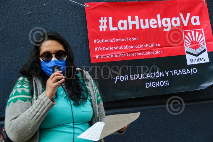 El Sindicato del Instituto de Educación Media Superior (SUTIEMS) en conferencia de prensa.