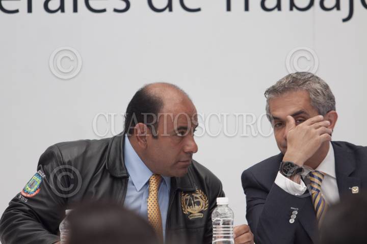 MÉXICO, D.F., 26ABRIL2013.- Juan Ayala Rivero, presidente del Sindicato Único de Trabajadores del Gobierno del Distrito Federal, y Miguel Ángel Mancera, Jefe de Gobierno, encabezaron el foro de revisión de condiciones generales de trabajo del STUGDF, en el Museo de la Ciudad de México. FOTO: MOISÉS PABLO / CUARTOSCURTO.COM