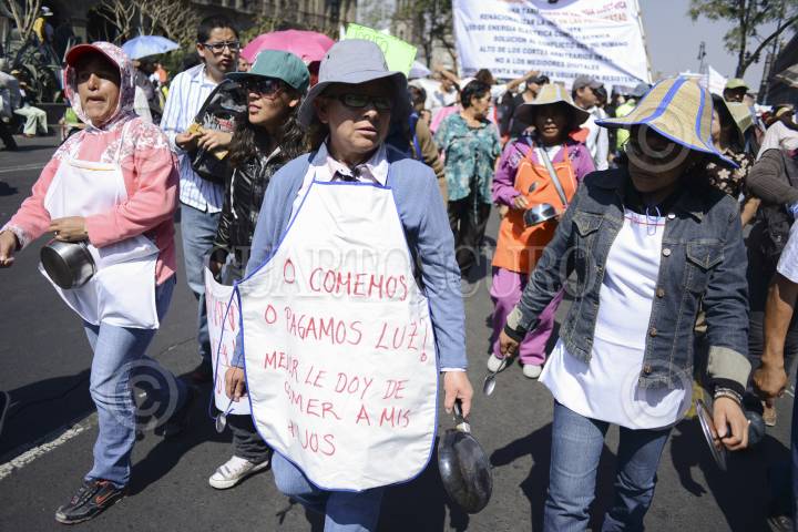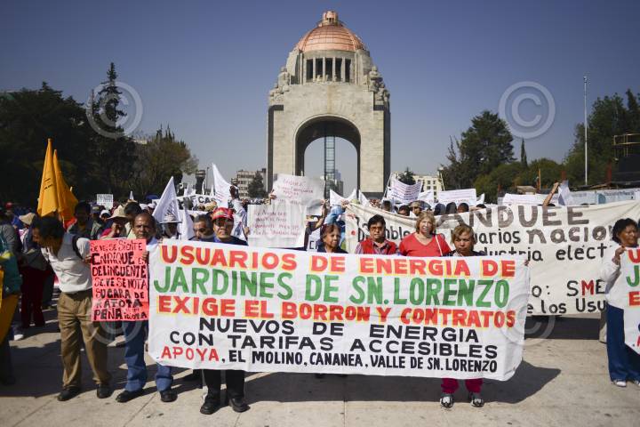 MÉXICO, D.F., 07FEBRERO2013.- Integrantes Sindicato Mexicano de Electricistas y diversas organizaciones sociales, marcharon del monumento a la Revolución, pasando por la Secretaria de Gobernación, la Suprema Corte de Justicia de la Nación, para finalizar en la Cámara de Diputados; en repudio por los altos cobros, ilegales, de la luz eléctrica que la Comisión Federal de Electricidad realiza en el país. FOTO: ADOLFO VALTIERRA /CUARTOSCURO.COM