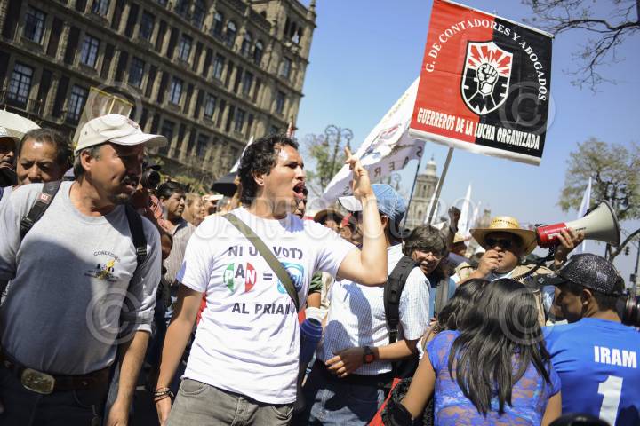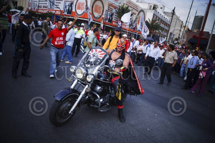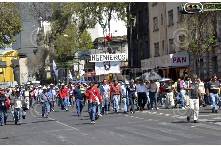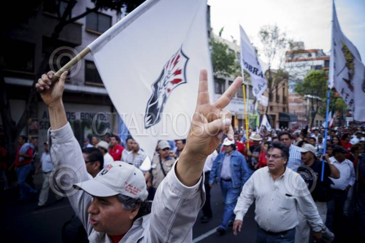MÉXICO, D.F., 10ABRIL2013.- Integrantes del Sindicato Mexicano de Electricistas marcharon desde la sede del Sindicato a la Secretaria de Gobernación para exigir la resolución del conflicto laboral. Mañana se provee una reunión de la dirigencia del sindicato con Miguel Ángel Osorio Chong, secretario de gobernación. FOTO: ADOLFO VALTIERRA /CUARTOSCURO.COM