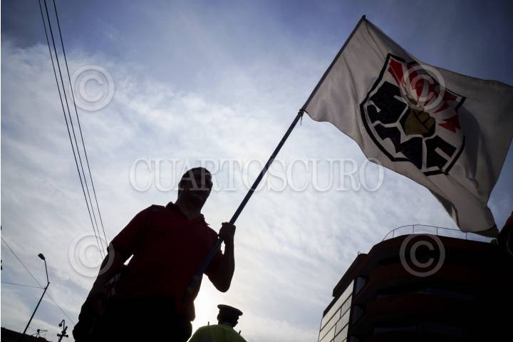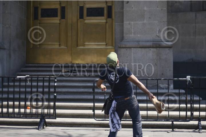 MÉXICO, D.F., 13FEBRERO2013.- Integrantes y simpatizantes del Sindicato Mexicano de Electricistas (SME) marcharon a las instalaciones de la Secretaría de Gobernación (Segob), los electricistas buscan establecer un dialogo con autoridades federales para resolver su conflicto laboral tras la extinción de la Compañía de Luz y Fuerza del Centro, hace poco más de tres años. FOTO: IVÁN MENDEZ /CUARTOSCURO.COM
