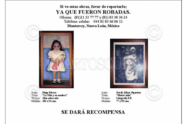 MONTERREY NUEVO LEÓN, 14FEBRERO2008.- Se roban de un domicilio particular en la ciudad de Monterrey dos pinturas de Diego Rivera y de David Alfaro Siqueros. FOTO: CUARTOSCURO.COM