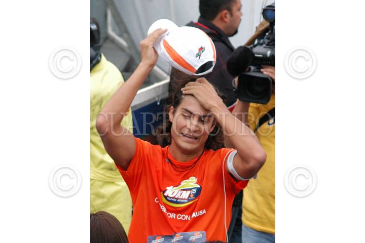 MEXICO, D.F. 14AGOSTO2005.- El conductor Alex Sirvent fue de las primeras celebridades que cruzó la meta en la carrera 10 Kilometros Televisa Deportes. FOTO: Miguel Dimayuga/CUARTOSCURO.COM