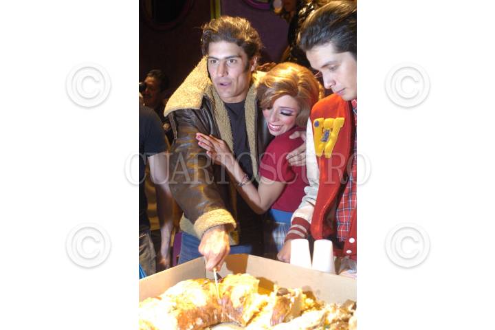MÉXICO, D.F. 07ENERO2007.- Alex Sirvent del musical Vaselina partió la rosca de reyes junto con el elenco de la ñuesta en escena. FOTO: IVÁN STEPHENS/CUARTOSCURO.COM