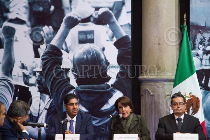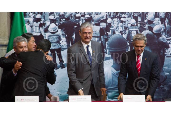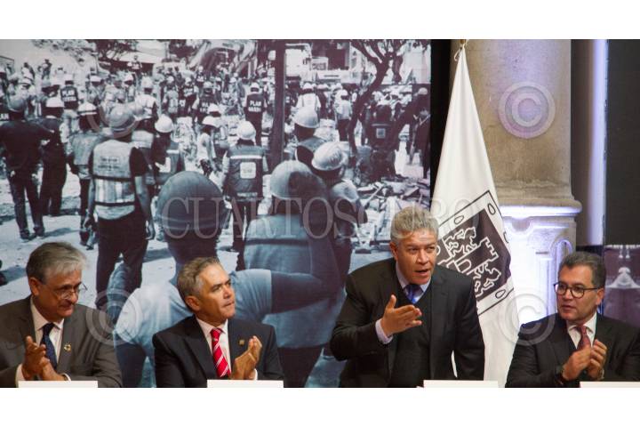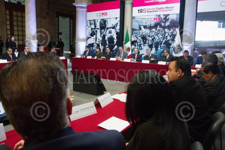 CIUDAD DE MÉXICO, 19ENERO2018.- Miguel Angel Mancera y David Penchyna, encabezaron la reunión con el reporte de lo realizado por el terremoto del 19 de septiembre que sacudio a la Ciudad de México. El evento tuvo lugar en el Antiguo Ayuntamiento capitalino. FOTO: VICTORIA VALTIERRA /CUARTOSCURO.COM