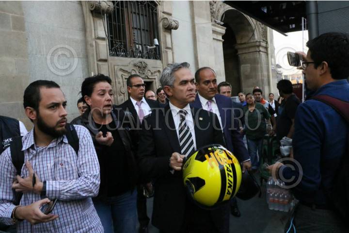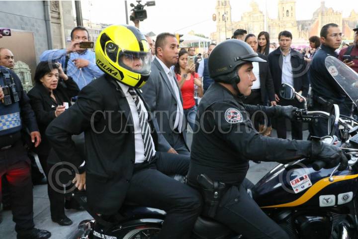 CIUDAD DE MÉXICO, 16FEBRERO2018.- Miguel Angel Mancera, jefe de gobierno de la Ciudad de Mexico, se traslado en motocicleta al C5 para verificar afectaciones del sismo que se regiatro la tarde de hoy. FOTO: CUARTOSCURO.COM
