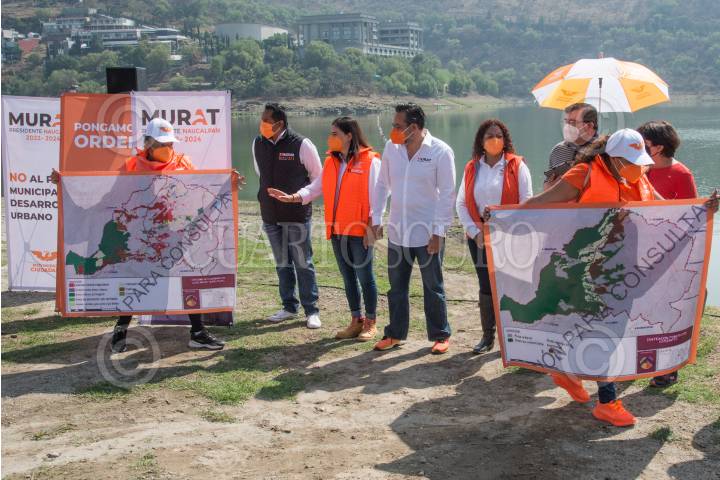 José Adolfo Murat, candidato por Movimiento Ciudanano (MC) para presidente de Naucalpan, ofreció conferencia de prensa para pronunciarse en contra del proyecto de la construcción de una planta potabilizadora que contempla usar a la presa Madín como centro de reabastecimiento a las alcaldías de la capital y el Estado de México.