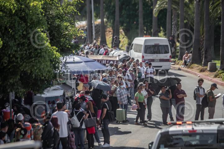 TIJUANA BAJA CALIFORNIA, 19JULIO2024 Personas haciendo fila para cruzar por el cruce peatonal de San Ysidro. Falla de Sistema Microsoft paraliza la frontera y los vuelos. A raíz de una falla operativa en el sistema de Windows Microsoft a nivel global que provocó la caída de miles de servidores en varias partes del mundo, incluyendo aeropuertos y cruces fronterizos. En Tijuana cientos de usuarios del Aeropuerto Internacional de Tijuana se quedaron varados hasta nuevo aviso y pese a que ya se solucionó la falla, el sistema continúa lento, causando la desesperación de los usuarios. La situación en la frontera más transitada del mundo, es la misma. Desde la noche del jueves 19 de julio, personas se quejaron de las largas filas que recorrían prácticamente toda la ciudad tras detenerse por completo el acceso hacia Estados Unidos. FOTO: OMAR MARTÍNEZ/CUARTOSCURO.COM