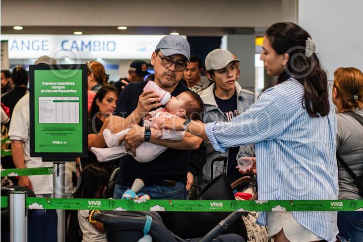 TIJUANA BAJA CALIFORNIA, 19JULIO2024 Familia con bebe haciendo fila para documentar en el aeropuerto de Tijuana. Falla de Sistema Microsoft paraliza la frontera y los vuelos. A raíz de una falla operativa en el sistema de Windows Microsoft a nivel global que provocó la caída de miles de servidores en varias partes del mundo, incluyendo aeropuertos y cruces fronterizos. En Tijuana cientos de usuarios del Aeropuerto Internacional de Tijuana se quedaron varados hasta nuevo aviso y pese a que ya se solucionó la falla, el sistema continúa lento, causando la desesperación de los usuarios. La situación en la frontera más transitada del mundo, es la misma. Desde la noche del jueves 19 de julio, personas se quejaron de las largas filas que recorrían prácticamente toda la ciudad tras detenerse por completo el acceso hacia Estados Unidos. FOTO: OMAR MARTÍNEZ/CUARTOSCURO.COM