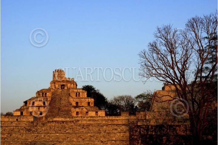 MÉXICO, D.F., 11MARZO2013.- Las edificaciones prehispánicas servían como calendarios observacionales. Una de las utilidades de los edificios observatorios eran el rendir culto a las deidades que habitaban la bóveda celeste. En la imagen, edificio de los Cinco Picos, de la zona arqueológica de Edzná. FOTO: INAH /CUARTOSCURO.COM