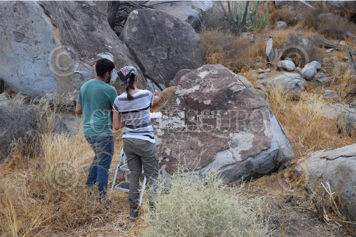 ROSARITO, BAJA CALIFORNIA, 22OCTUBRE2019.- Luego de tres semanas de intenso trabajo, en las inmediaciones de esta comunidad se logró el registro de 16 sitios con decenas de manifestaciones gráfico-rupestres, específicamente, petrograbados, cuya antigüedad se estima —por lo menos— en mil 500 años. La cantidad de sitios arqueológicos en la región de San Quintín-El Rosario, ponía de manifiesto su importancia a lo largo del tiempo; no obstante, resultaba paradójico que no existiera evidencia de sitios con pintura y/o petrograbados, al haber sido de una de las manifestaciones gráficas más significativas de los antiguos pobladores de la península de Baja California. El registro de estos lugares permitió corroborar que se trata de un territorio de gran riqueza biocultural. Los investigadores participantes en la iniciativa fueron las arqueólogas Enah Montserrat Fonseca Ibarra y Fiorella Fenoglio Limón, del Centro INAH Baja California y Centro Querétaro, respectivamente; y el biólogo Héctor Sánchez Márquez, de la asociación civil Terra Peninsular, informó el antropólogo Jaime Vélez Storey, director del Centro INAH BC. El objetivo central de esta tarea fue conocer y registrar, como parte del Proyecto Estudio de Campamentos en la Línea Costera y Valles Intermontanos de Baja California, las llamadas “pinturas antiguas”, las cuales fueron identificadas por diversos pobladores dentro de sus terrenos. FOTO: INAH /CUARTOSCURO.COM
