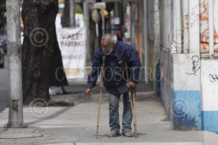 MÉXICO, D.F., 17FEBRERO2015.- Un hombre de la tercera edad en muletas va pidiendo limosna sobre el Circuito Interior. FOTO: MOISÉS PABLO /CUARTOSCURO.COM