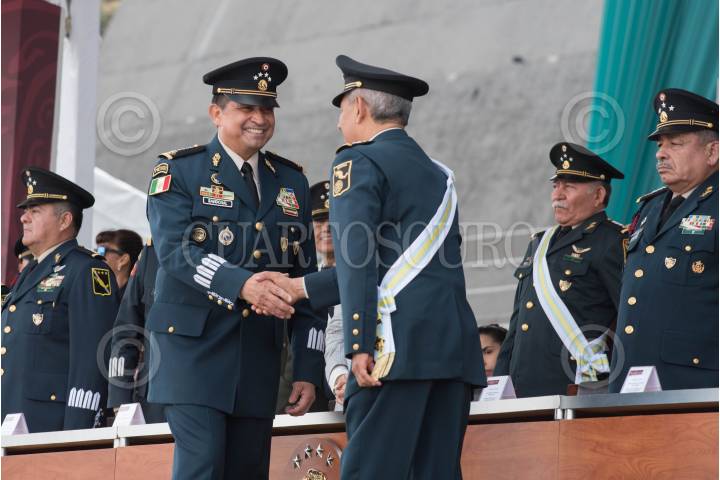 CIUDAD DE MÉXICO, 06JUNIO2019.- Luis Cresencio Sandoval González, Secretario de la Defensa Nacional, encabezó la “Ceremonia de Imposición de condecoraciones y reconocimientos a Generales que pasaron a situación de retiro”, llevada a cabo en la explanada del Heroico Colegio Militar. FOTO: MARIO JASSO /CUARTOSCURO.COM