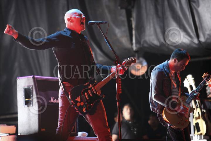 PAPANTLA, VERACRUZ., 24MARZO2013.- Billy Corgan, cantante y guitarrista de la banda Smashing Pumpkins, durante su presentación en el nicho de la música del parque Takilhsukut, en el marco de Cumbre Tajín 2013. FOTO: FÉLIX MARQUEZ /CUARTOSCURO.COM