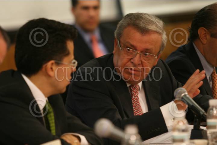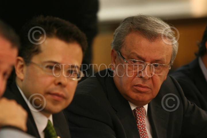 MÉXICO D.F. 17ABRIL2008.-José Antonio Ceballos Soberanis, Director General de PEMEX Refinación acudió la Cámara de Diputados donde compareció ante la Comisión Investigadora de la Legalidad de los Contratos de PEMEX Refinación de 1997 a la Fecha.En la imagen es acompañado por el diputado Xavier López Adame, presidente de esta comisión. FOTO: GUILLERMO PEREA /CUARTOSCURO.COM