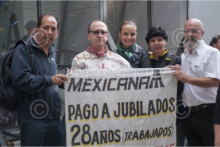 MÉXICO, DF., 13FEBRERO2014.- Jubilados de la extinta Mexicana de Aviación realizaron una protesta en la Puerta 4 del Aeropuerto Internacional de la Ciudad de México (AICM). Exigieron a la Secretaría de Comunicaciones y Transportes (SCT) y a la Secretaría de Gobernación (Segob) se entreguen las jubilaciones correspondientes a los 725 jubilados que continúan sin pensión desde hace tres años. FOTO: SAÚL LÓPEZ /CUARTOSCURO.COM