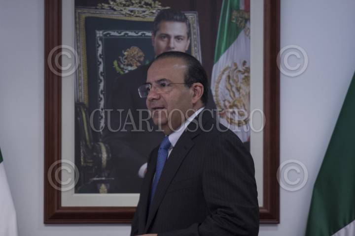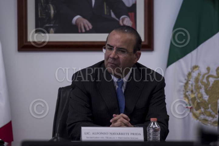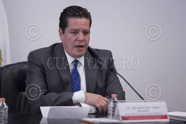 CIUDAD DE MÉXICO, 02FEBRERO2017.- Alfonso Navarrete Prida, secretario de Trabajo y Previsión Social, realizó la toma y entrega de nota de la Asociación Sindical de Sobrecargos de Aviación (ASSA) a Ricardo del Valle Solares, secretario general de ASSA México. FOTO: GALO CAÑAS /CUARTOSCURO.COM