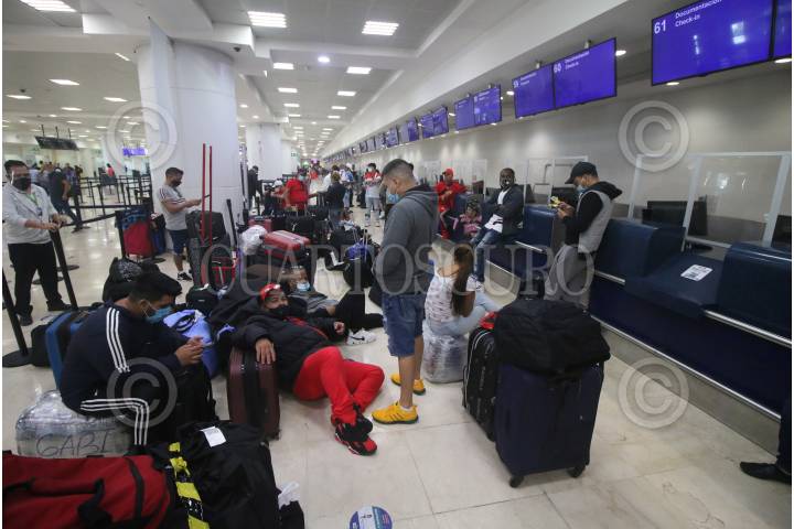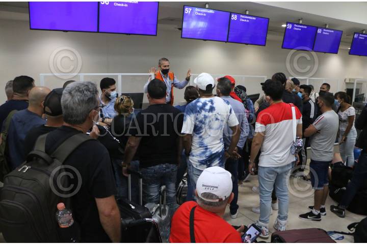 Las personas se quedaron reunidas ante el mostrador, en espera de una respuesta por parte de la aerolínea.
