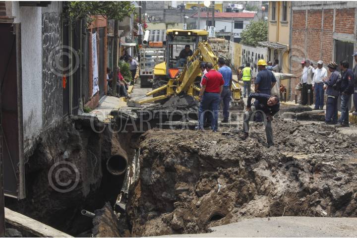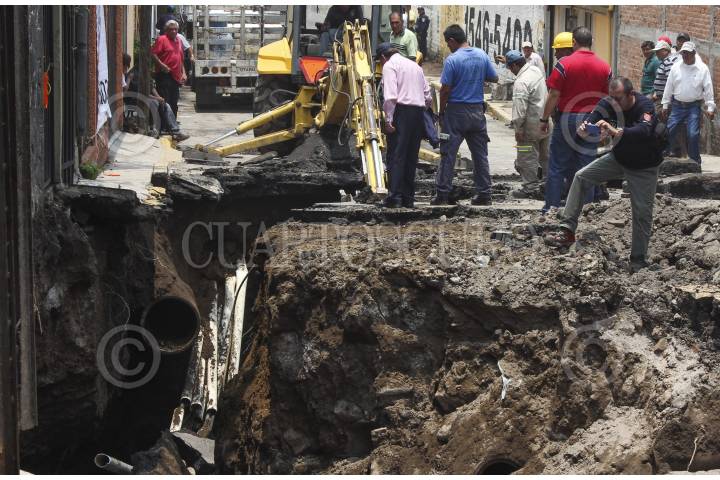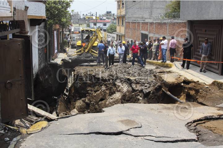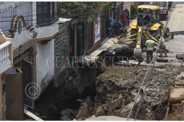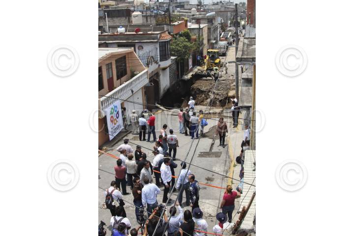 MÉXICO, D.F., 22MAYO2014.- Al menos una semana de trabajos tardaran en reparar el que un tubo de 20 pulgadas de diámetro de la red primaria de agua potable que provocó un socavón de 25 metros de largo por 8 de ancho y 12 metros de profundidad, ubicado en la calle Águila Blanquinegra esquina con Jacobo Watts, colonia Pueblo de San Simón Culhuacán. FOTO: SAÚL LÓPEZ /CUARTOSCURO.COM