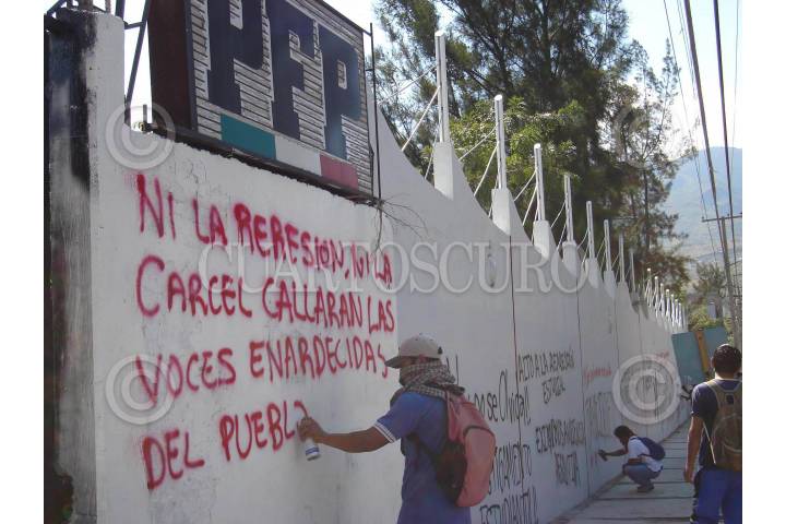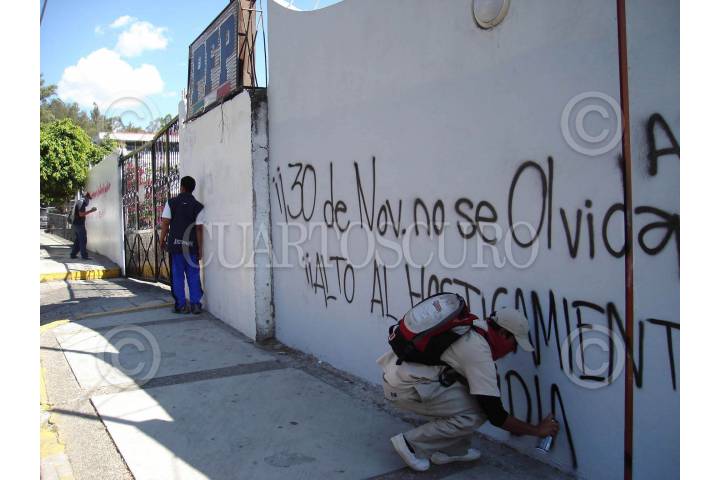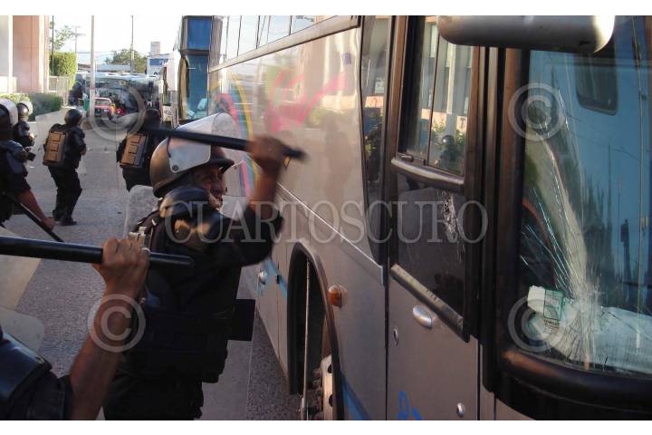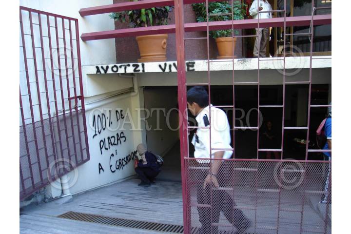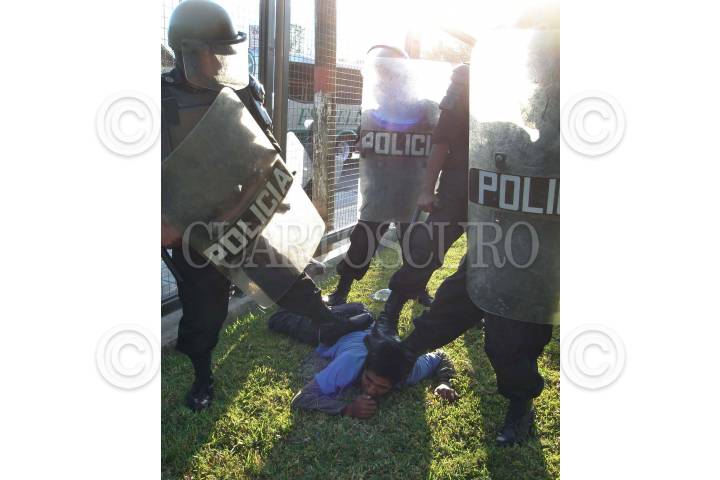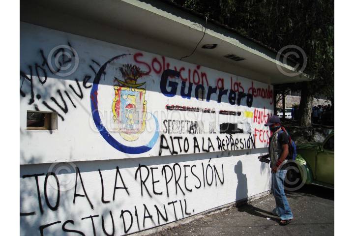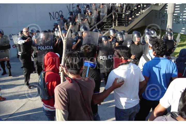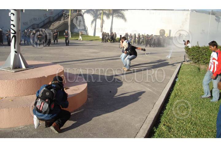 CHILPANCINGO, GUERRERO. 14NOVIEMBRE2007.- Aspecto general del desalojo violento que realizaron elementos de la policia estatal contra egresados de la normal rural de Ayotzinapa y de estudiantes de varias normales del pais pertenecientes a la Federacion de Estudiantes Campesinos Socialistas de Mexico (FECSM) de las instalaciones del Congreso local. FOTO: OSCAR ALVARADO/CUARTOSCURO.COM