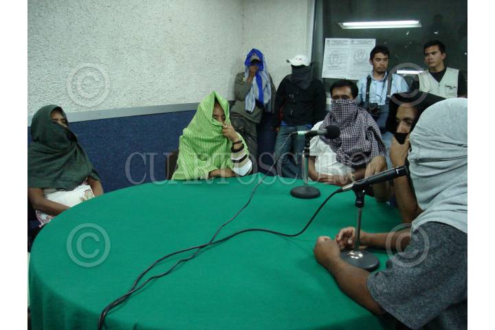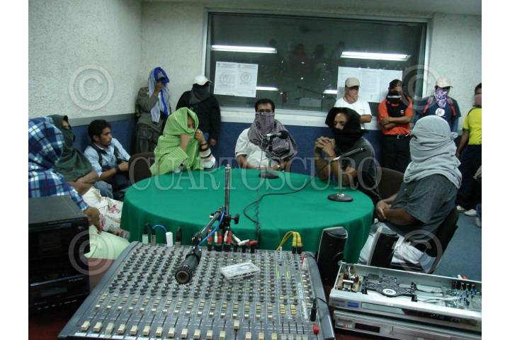 CHILPANCINGO, GUERRERO.- Egresados de la normal rural de Ayotzinapa, acompañados de padres de familia y estudiantes de diversas normales del pais pertenecientes a la Federacion de Estudiantes Campesinos Socialistas de Mexico, tomaron varias radiodifusoras para protestar contra el desalojo violento que sufrieron a manos de policias del estado y para exigir la entrega de plazas para maestros rurales asi como el respeto a la licenciatura de nivel primaria. En la imagen durante la toma de Radio Universidad. FOTO: OSCAR ALVARADO/CUARTOSCURO.COM