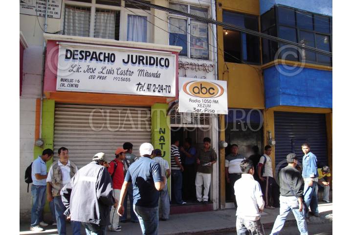 CHILPANCINGO, GUERRERO.- Egresados de la normal rural de Ayotzinapa, acompañados de padres de familia y estudiantes de diversas normales del pais pertenecientes a la Federacion de Estudiantes Campesinos Socialistas de Mexico, tomaron varias radiodifusoras para protestar contra el desalojo violento que sufrieron a manos de policias del estado y para exigir la entrega de plazas para maestros rurales asi como el respeto a la licenciatura de nivel primaria. En la imagen luego de intentar tomar ABC radio lo cual les fue impedido por el personal que labora en dicha radio. FOTO: OSCAR ALVARADO/CUARTOSCURO.COM