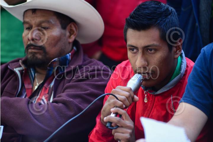 CIUDAD DE MÉXICO, 07FEBRERO2016.- La Federación de Estudiantes Socialistas Campesinos de México acompañados por algunos de los padres de los 43 estudiantes desaparecidos en Iguala, ofrecieron una conferencia de prensa para denunciar agresiones por parte del estado al protestar en contra del Plan integral de diagnóstico, rediseño y fortalecimiento de las escuelas normales (PIDIRFEN), el cual aseguran pretende desaparecer las escuelas normales del país. FOTO: ISABEL MATEOS /CUARTOSCURO.COM
