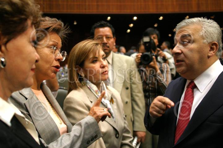 MEXICO, D.F. 21JUNIO2005.- Socorro Díaz, diputada perredista, platica con el lider de la bancada priísta Emilio Chuayffet, durante la primera sesión del periodo extraordinario de la LIX legislatura en San Lázaro. FOTO: Sandra Perdomo/CUARTOSCURO.COM