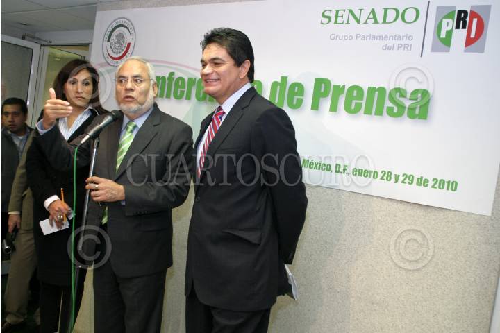 MÉXICO, D.F., 28ENERO2010.- Los senadores Mária del Socorro Garcia Quiroz, Carlos Jimenez Macias y Mario Lopez Valdez durante una conferencia de prensa por motivo de la II Reunión Plenaria del grupo parlamentario del PRI que se realizo en la torre caballito del Senado de la República. FOTO: RODOLFO ANGULO/CUARTOSCURO.COM