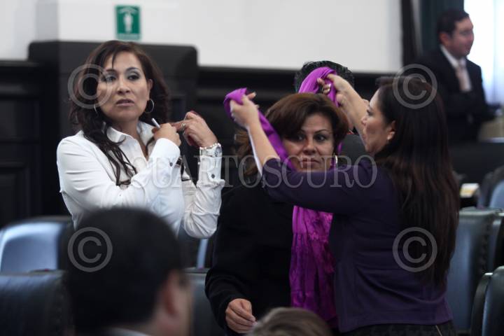 MÉXICO, D.F., 25NOVIEMBRE2010.- La senadora Socorro Garcia, coloca un listón por motivo del día en contra de la violencia a alas mujeres al senador Francisco Labastida durante la sesión ordinaria en el Senado de la República. FOTO: RODOLFO ANGULO/CUARTOSCURO.COM
