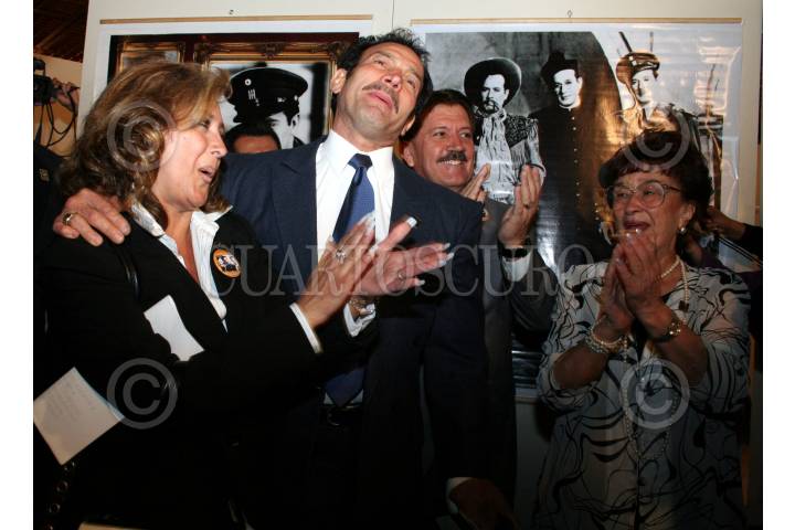 MÉXICO, D.F., 10ABRIL2007.- Familiares del desaparecido ídolo Pedro Infante y legisladores de sinaloa, inauguraron una exposición fotografica de su vida en el vestibulo de la Cámara de Diputados. En la imagen Beatriz Pages Llergo, legisladora, Fernando Casanova, actor, María Socorro Infante, hermana y Gilberto Oja, legislador. FOTO: PAOLA HIDALGO/CUARTOSCURO.COM
