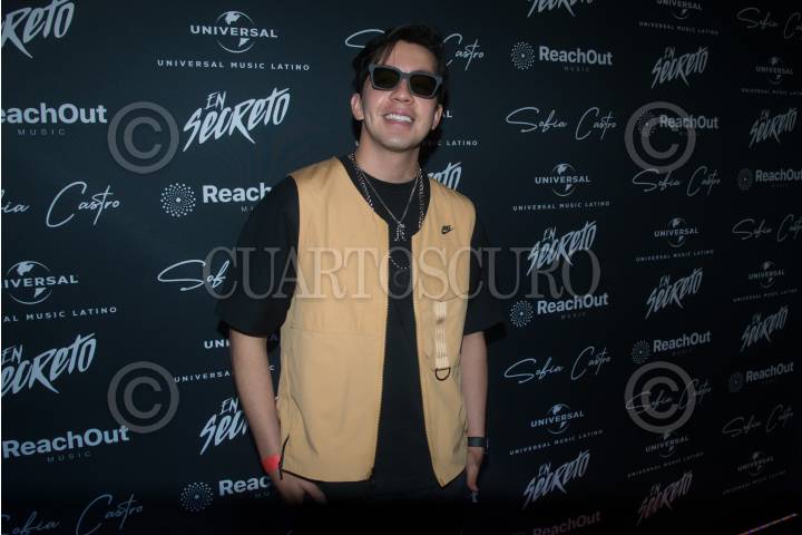 Atl Garza, músico y creador de contenido en redes sociales, durante la alfombra roja de la nueva producción musical "En secreto" de la cantante e influencer colombiana Sofía Castro.