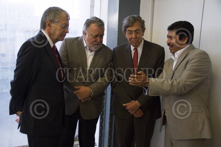 MÉXICO, D.F., 18SEPTIEMBRE2013.- Manuel Camacho Solís, senador del PT, Alejandro Encinas, senador del PRD, Cuauhtémoc Cárdenas, coordinador de asuntos internacionales del GDF y Sofío Ramírez, senador del PRD, en el Museo del Estanquillo en donde se celebró el foro "Que sigue para la izquierda en México", en el marco del segundo aniversario de la revista Lazurda. FOTO: ADOLFO VLADIMIR /CUARTOSCURO.COM