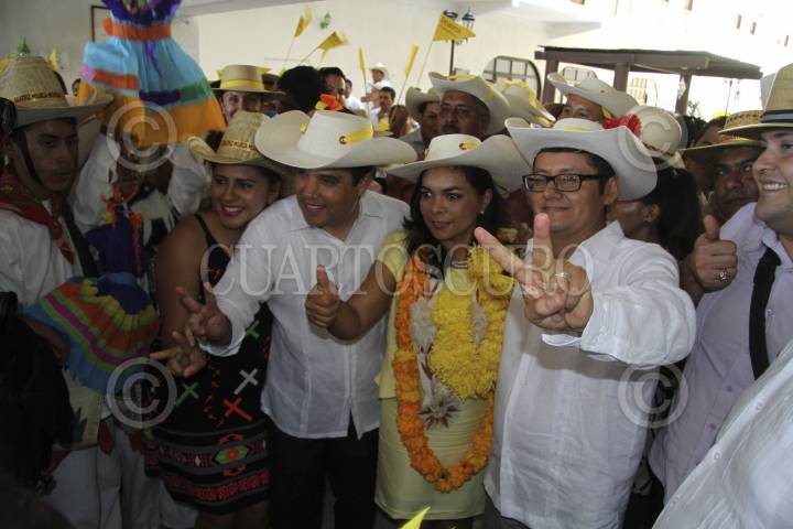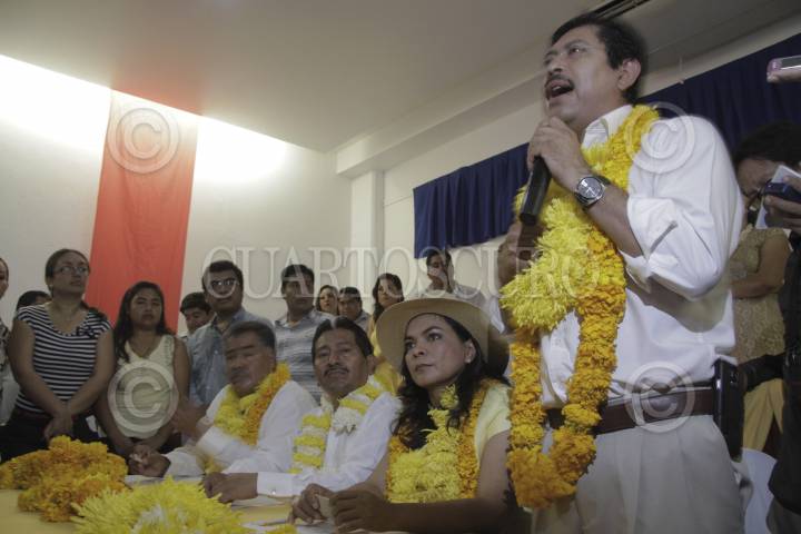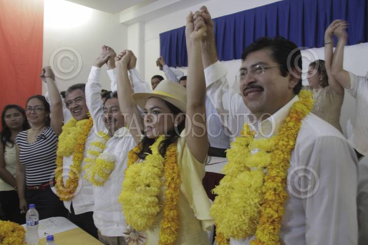 ACAPULCO, GUERRERO, 23ENERO2015.- Los cuatro aspirantes del PRD a la candidatura a gobernador; Víctor Aguirre, Sebastián de la Rosa, Beatriz Mojica y Sofio Ramírez se registraron en conjunto en un hotel de la costera para participar en el proceso interno para la selección del candidato a la gubernatura. Los aspirantes coincidieron en llamar a la unidad del partido con miras al proceso electoral; el senador "aguirrista" hizo un llamado a su par, Armando Ríos Piter, a sumarse al respaldo del candidato que sea elegido y apoye al partido en la contienda de gobernador. FOTO: BERNANDINO HERNÁNDEZ /CUARTOSCURO.COM
