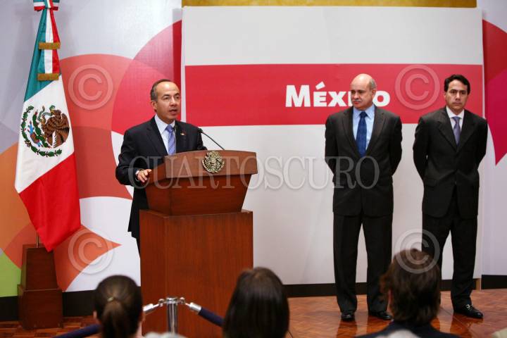 MÉXICO D.F., 06AGOSTO2008.-El presidente Felipe Calderón, anuncio esta mañana la sustitución de Eduardo Sojo en la Secretaria de Economía por Gerardo Ruiz Mateos. El mandatario propuso a Eduardo Sojo para dirigir el INEGI. FOTO: IVAN MENDEZ/CUARTOSCURO.COM