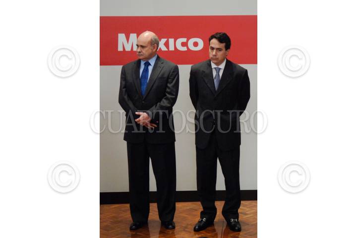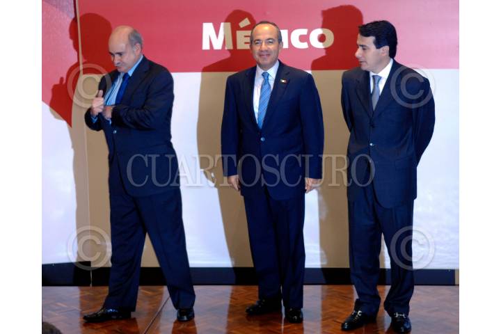 MEXICO D.F., 06AGOSTO2008.- Mensaje a los medios de comunicación del Presidente de los Estados Unidos Mexicanos el Licenciado Felipe Calderon Hinojosa, que tuvo lugar en el salón Manuel Avila Camacho de la Residencia Oficial de los Pinos, en la imagen con Eduardo Sojo que fue removido de su cargo de secretario de economía . FOTO: ARIEL GUTIERREZ/CUARTOSCURO.COM