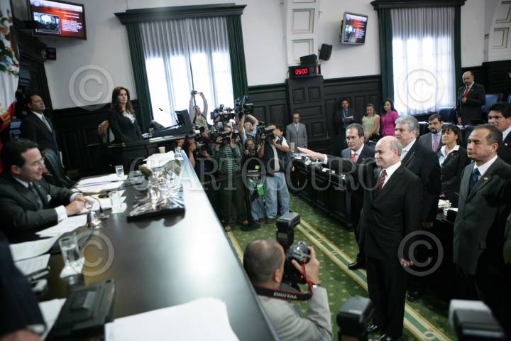 MÉXICO D.F., 27AGOSTO2008.- Eduardo Sojo, ex-secretario de Economía, tomo protesta como nuevo director del INEGI ante la mesa directiva de la Comisión Permanente, en el Senado de la República. FOTO: CUARTOSCURO.COM