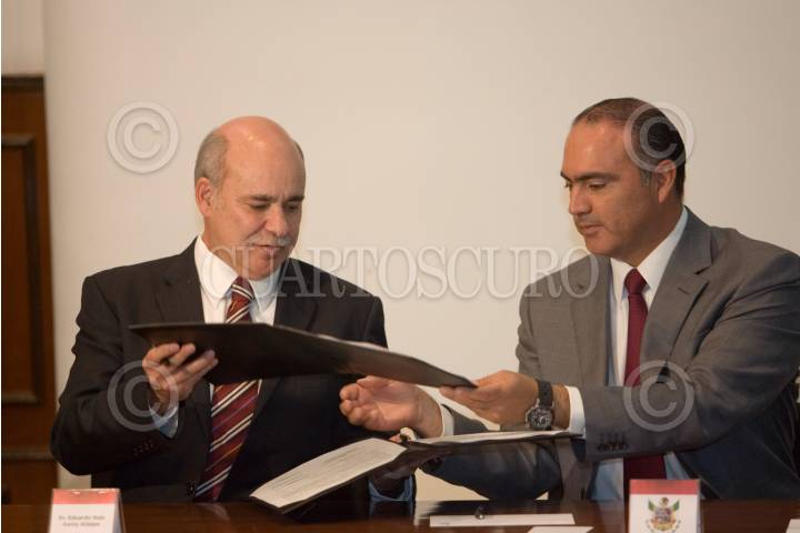 QUERETARO, QUERETARO, 14MAYO2010.- El responsable del Instituto Nacional de Estadística y Geografía (INEGI), Eduardo Sojo, firmó un convenio de colaboración inter-institucional con el gobernador del Estado José Calzada. FOTO: DEMIAN CHÁVEZ/CUARTOSCURO.COM
