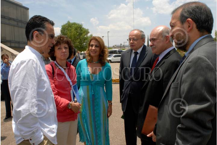 MÉXICO, D.F., 14MAYO2010.- Los comisionados del IFAI, Ángel Trinidad, Jacqueline Peschard, y María Elena Pérez-Jaén, platican Eduardo Sojo, quien asistió a la puesta en marcha del sistema INFOMEX en el Instituto Nacional de Estadística Geografía (INEGI). FOTO: CUARTOSCURO.COM