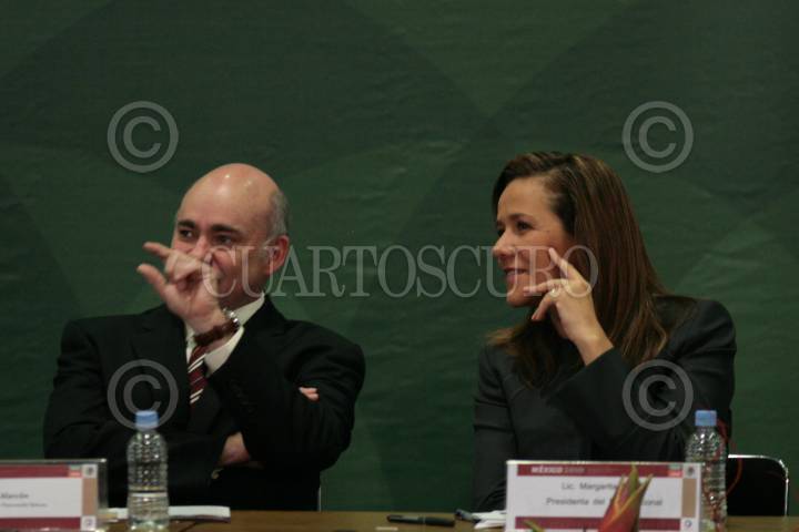 MÉXICO, D.F., 13JULIO2010.- Eduardo Sojo Garza-Aldape, director general del Instituto Nacional de Geografía y Estadítica (INEGI), dialóga con Margarita Zavala, presidenta del patronato del DIF, durante la presentación de los "Resultados del Módulo de Trabajo Infantil" que se celebró en el salón Adolfo López Mateos de la residencia oficial de los Pinos. FOTO: MARCO POLO GUZMÁN HERNÁNDEZ/CUARTOSCURO.COM