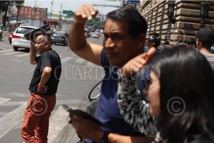 CIUDAD DE MÉXICO, 06MAYO2025.- Personas se cubren de los rayos del sol que caen sobre la capital del país durante la tarde de este martes. Las autoridades locales han comunicado que para los siguientes días se esperan temperaturas arriba de los 32 grados. FOTO: DANIEL AUGUSTO/ CUARTOSCURO.COM